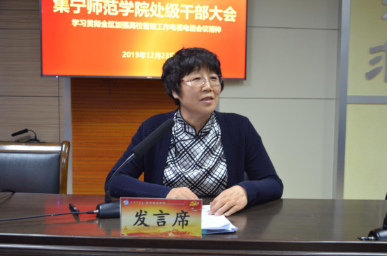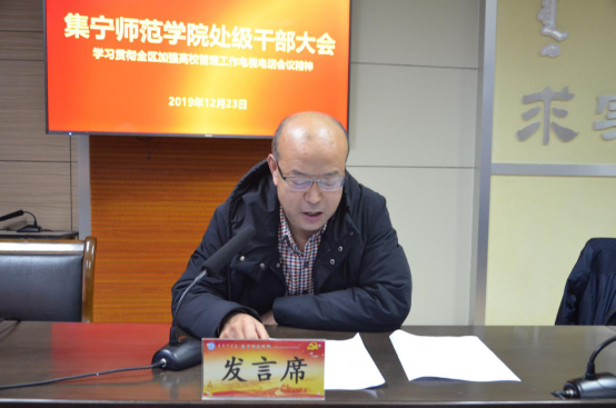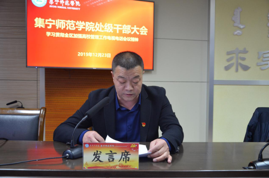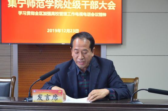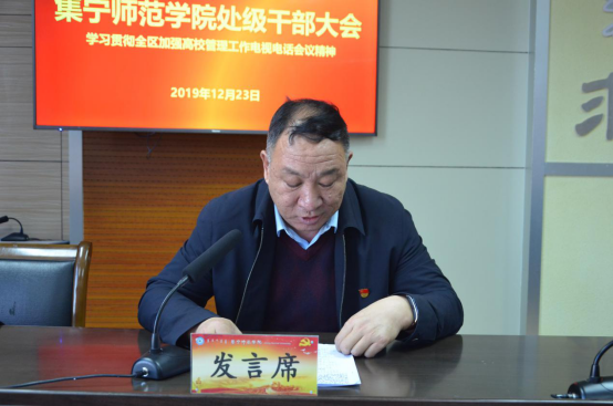 为贯彻落实全区加强高校管理工作电视电话会议精神,12月23日,beat365正版唯一官方网站召开全校处级干部大会。党委副书记、校长朱玉东,党委委员、宣传部部长张富,党委委员、统战部部长张秀文,党委委员、人事处处长李景杰,党委委员、科技处处长李平出席,全校副处级以上干部参加。党委委员、副校长梁政主持会议。
