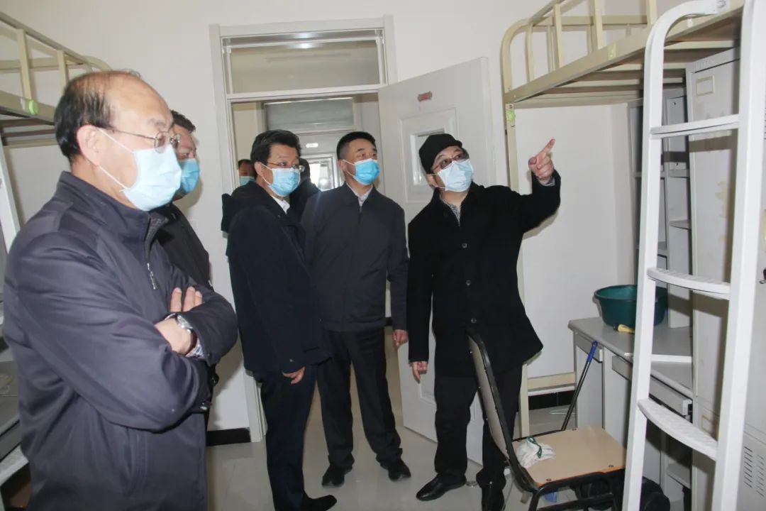 王晓平一行听取了beat365正版唯一官方网站党委副书记、校长朱玉东关于学校办学基本情况,学校疫情防控、停课不停学、复工复产、复学准备工作等情况的介绍,实地查看了学生餐厅、防护物资储存仓库、学生宿舍和校医院,详细了解了beat365正版唯一官方网站防控物资储备及防控措施落实情况,并对复学后学生排队取餐间隔,就餐坐向、间隔距离,防控物资储备、分配,学生住宿条件、公寓工作人员值班安排,临时留观室床位安排、值班人员安排等问题提出指导性意见和建议。王晓平充满人文关怀地提出,一是在防控物资的分配上要酌情考虑家庭特殊困难或农村牧区等购买不上口罩的学生;二是要在学生公寓、食堂,校医院等场所张贴疫情防控通用知识的流程图、海报等,引导学生正确理性地看待疫情,营造浓厚的疫情防控氛围。