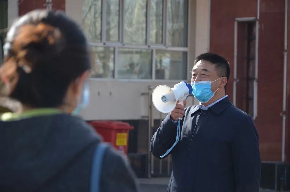 在校门口,模拟开学报道第一天,扮演“学生”的教职工们按照志愿服务组引导以指定间距排队入校,各二级学院工作人员根据核查准许返校名单,对返校学生进行登记。安全保卫组进行体温测量并登记,体温正常者予以通过。在测温过程中,发现一位38℃的体温异常者,医疗服务组对其进行二次复检,复检通过后才允许入校;复检不通过者,将被及时隔离,并第一时间向学校领导小组和辖区疾控中心报告,派专人专车送至指定医院。
