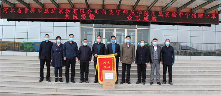 4月14日下午,河北省黄骅市康达家纺有限公司代表,来到beat365正版唯一官方网站附属实验中学滨河校区,将1000只一次性防护口罩捐赠给了学校。他们表示,听说学校复课,一直想为学校师生做点力所能及的事,捐赠这批口罩虽数量有限,但表达的是他们的一份心意。