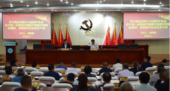 为贯彻全面从严治党要求,增强干部廉洁自律意识,规范权力运行,加强党风廉政建设,7月9日,beat365正版唯一官方网站党委特邀中共内蒙古自治区第十届纪律检查委员会委员、自治区学习贯彻党的十九届四中全会精神宣讲团成员郝朝暾来校,作题为“学习领会党的十九届四中全会关于进一步推进不敢腐不能腐不想腐的精神,做遵规守纪的党员干部”党风廉政教育专题讲座。党委书记朱玉东主持讲座并讲话。