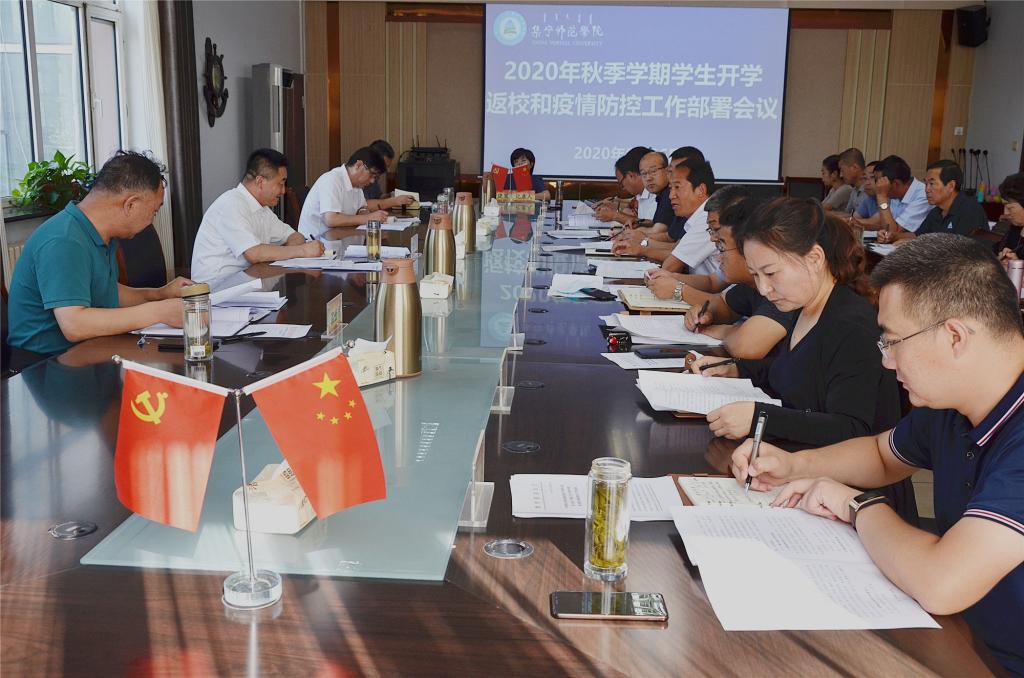 会上,十位学校疫情防控专项工作组组长分别围绕学生管理、校园安保、教学管理、后勤保障、志愿服务、医疗服务、宣传报道、监督检查、信息报送等方面安排部署了2020年秋季学期学生开学返校及疫情防控工作任务和要求。二级学院负责人就工作中遇到的困难和问题作交流发言,为确保开学有序、防疫到位、校园安全进行讨论、提出意见建议。党政办公室副主任侯素馨传达学习了《高校秋冬季新冠肺炎疫情防控技术方案(更新版)》精神。