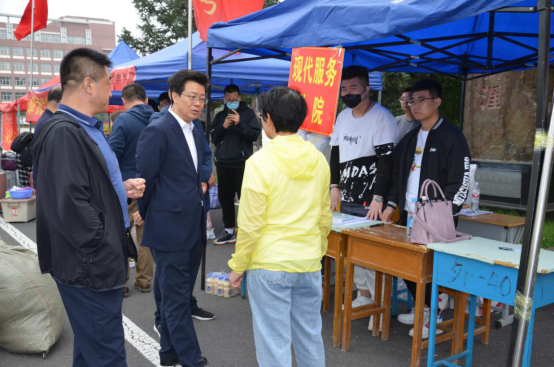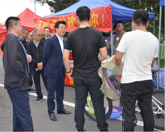 朱玉东一行向忙于学生报到工作的老师和志愿者学生表示慰问,关心询问前来报到的学生返校前的居家生活、返校时的交通行程及返校后的身心健康、报到住宿等情况,叮嘱学生们尽快调整心态适应返校节奏,做好个人防护和公共卫生,以良好的精神面貌迎接新学期的学习生活。