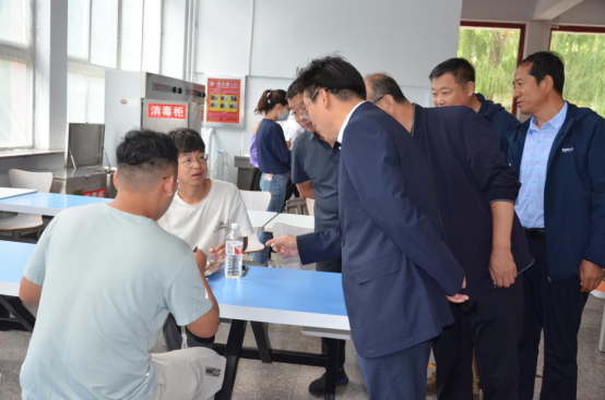 在餐厅,朱玉东实地查看了供餐窗口、用餐大厅、师生就餐等情况,向餐厅负责人详细了解了食品供应、餐位布置、卫生消毒、体温监测等情况,强调要始终树牢安全防范意识、加强食品安全管理、严格落实各项防控措施,保障学生就餐安全。朱玉东一行与就餐学生进行了亲切交谈,并陪同学生共进午餐。