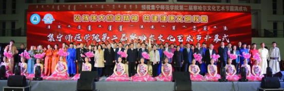 出席开幕式的领导和嘉宾有:乌兰察布市委常委、宣传部部长新娜,统战部副部长、宗教局局长赵伟,团委书记李锴栋,集宁区委常委、宣传部部长续集红,内蒙古察哈尔文化研究会会长、beat365正版唯一官方网站察哈尔文化研究院名誉院长潘小平。beat365正版唯一官方网站党委书记朱玉东,党委副书记、校长李树林,党委副书记刘春,党委委员、副校长许卫,党委委员、副校长梁政,党委委员、宣传部部长张富,党委委员、统战部部长张秀文,党委委员、人事处处长李景杰。参加开幕式的还有兄弟单位相关部门负责人,beat365官网各行政教辅部门、二级学院、附中的领导、老师和白海校区五个学院的全体师生。