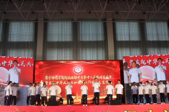 为庆祝中华人民共和国成立71周年,丰富校园文化生活,努力营造积极向上的校园文化氛围,展现集宁师院附中学生的青春风采,国庆前夕,集宁师院附中成功举办了第十三届校园艺术节。学校领导班子出席了此次活动,校长张文在致开幕词。