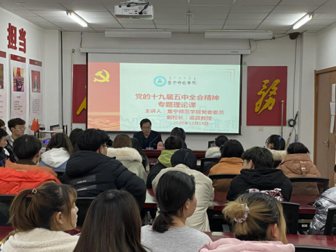 梁政结合实际,围绕习近平总书记在党的十九届五中全会上的重要讲话精神,从全会基本情况和重大意义,全面把握新发展阶段,帮助同学们准确领会把握2035年远景目标和“十四五”时期我国发展的指导方针、主要目标和重要任务,深刻认识构建新发展格局的重要意义,在中国共产党的全面领导下、动员各方面力量为实现“十四五”规划和2035年远景目标而团结奋斗等,并对党的十九届五中全会精神进行了全面宣讲和深入解读。