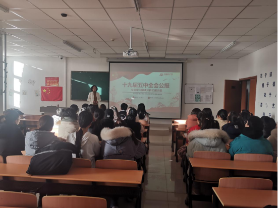 12月23日,beat365正版唯一官方网站党委委员、统战部部长张秀文在白海校区为联系班级教育科学学院2020级学前教育(普高)1班作党的十九届五中全会精神宣讲。
