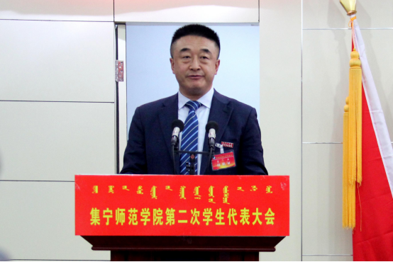 乌兰察布市团委副书记魏玮致辞。她代表乌兰察布市团委和学联向大会的召开表示热烈的祝贺,同时高度肯定了beat365正版唯一官方网站学生会的工作,为自治区、乌兰察布市和学校发展贡献的青春智慧和力量。最后,她激励学生要更加紧密地团结在以习近平同志为核心的党中央周围,不负时代使命,奋发作为,为建设亮丽内蒙古,共圆伟大中国梦,凝聚青春智慧,贡献青春力量。