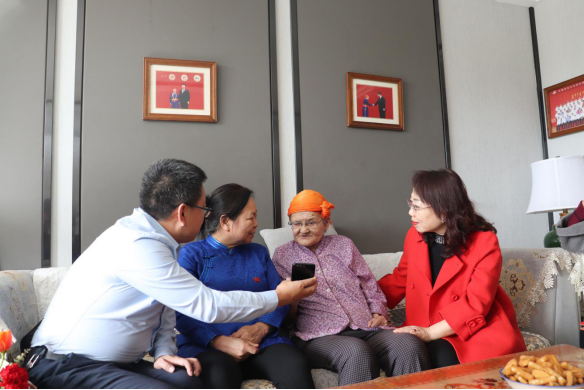 临别时候,都贵玛老妈妈站起来深情相送,并说,我只希望老师们好好工作,为我们内蒙古自治区、为乌兰察布培养更多人才,不辜负党,不辜负人民群众。虽然我老了,我也在很努力地资助、参加各类活动,让我们共同努力吧。