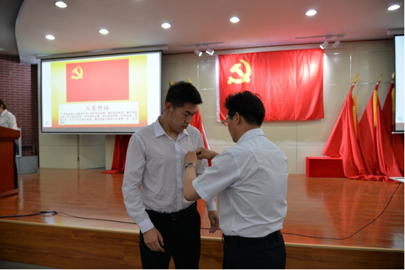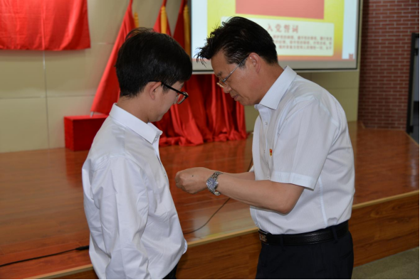 宣誓仪式在庄严的《义勇军进行曲》中拉开序幕。刘晓霞同志宣读了中共beat365正版唯一官方网站委员会审议批准的240新发展预备党员名单,朱玉东同志为新发展预备党员代表佩戴了党徽。
