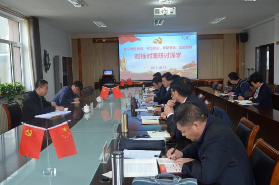 研讨深学过程中,校领导和党委委员依次发言,围绕“守初心、担使命,找差距、抓落实”的总要求,紧密联系工作实际、岗位实际,谈认识、谈体会、谈问题、谈整改,深入地分析、剖析问题,达到对标对表研讨要求。