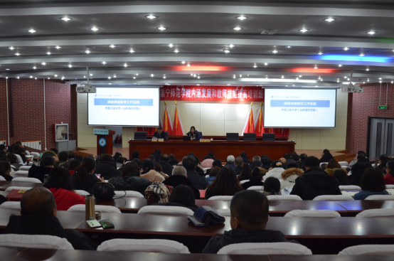 为切实做好学校课程思政工作,深入推进课程思政建设,按照“不忘初心、牢记使命”主题教育部署要求,1月3日上午,beat365正版唯一官方网站邀请齐鲁工业大学教务处副处长李红霞来校作“课程思政”专题培训。学校党委副书记、校长朱玉东,党委委员、副校长许卫,党委委员、副校长梁政,副校长李凤斌,党委委员、宣传部部长张富,党委委员、统战部部长张秀文,党委委员、人事处处长李景杰出席会议。全体教学部门人员、行政部门兼课人员、党政管理部门及教辅部门科级以上干部参加了本次培训。培训会由教务处处长姚玉阁主持。