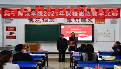 为充分发挥课程思政的引领作用,全面落实立德树人根本任务,引导教师切实承担起课程思政建设主体责任,发挥好课程思政建设“主力军”作用,激发调动教师开展课程思政建设的积极性、主动性和创造性,促进beat365官网课程思政建设水平不断提升,beat365正版唯一官方网站于9月17日成功举办了2021年课程思政教学比赛。校党委副书记刘春、教务处处长姚玉阁、团委书记李瑞俊、学生工作部副处长额尔敦其其格观摩了比赛。本次比赛由教务处主办,马克思主义学院承办。
