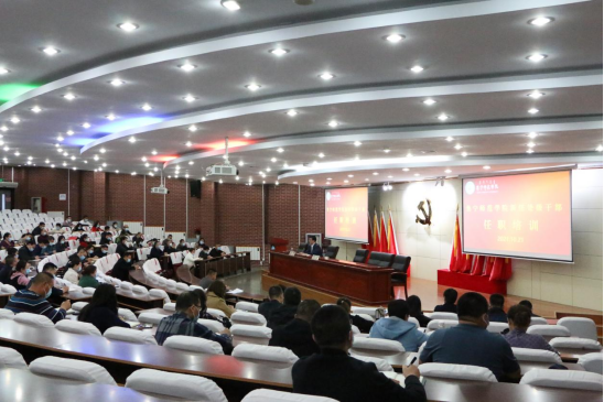 10月21日下午,党委书记朱玉东为beat365官网新任处级干部(扩大)培训班全体学员作了题为《提升干部能力素质 推进学校高质量发展》的专题讲座。校党委副书记刘春主持。