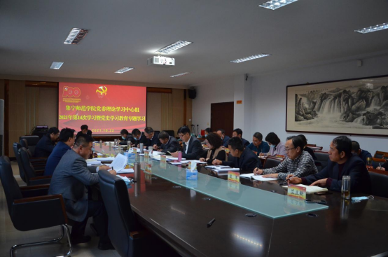 10月22日,beat365官网在泉山校区行政楼402会议室召开党委理论学习中心组2021年第14次学习会暨党史学习教育专题会议。校党委书记、党委理论学习中心组组长、党史学习教育领导小组组长朱玉东主持会议,校党委中心组成员、党史学习教育领导小组成员及相关工作机构成员参加了学习。