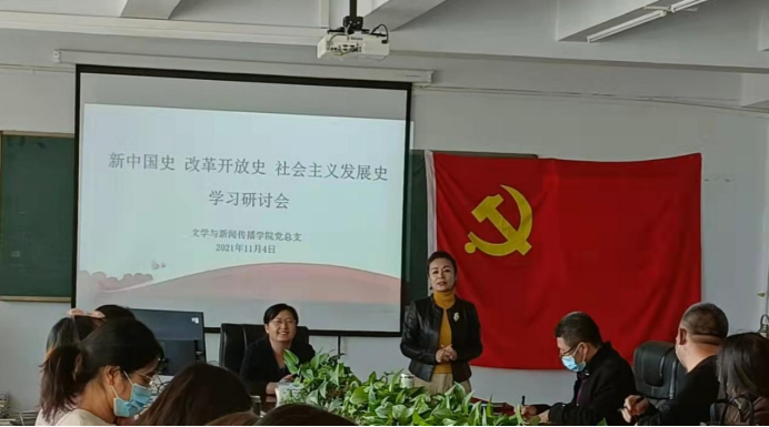11月4日,文学与新闻传播学院召开“新中国史、改革开放史、社会主义发展史”学习研讨会。会议由文学与新闻传播学院党总支书记张一弘主持,文学与新闻传播学院全体师生党员参加。马克思主义学院教师张爱梅为全体师生党员作了“中国共产党简史”的专题辅导。