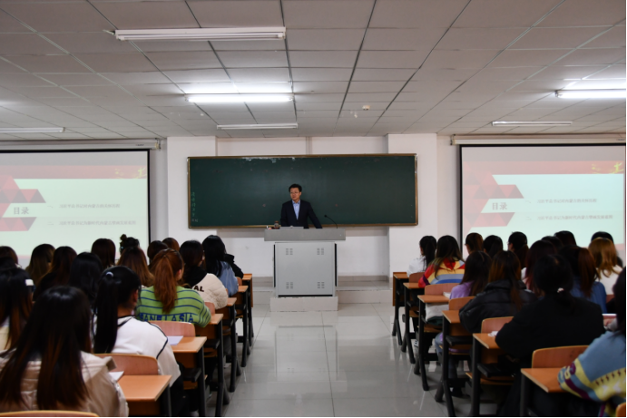 为进一步学习好、宣传好、贯彻好中央民族工作会议精神,11月16日,beat365正版唯一官方网站党委书记朱玉东为2020级学前教育(高职)专业1、2班同学讲授铸牢中华民族共同体意识课程第八讲“习近平总书记为内蒙古擘画发展蓝图”。