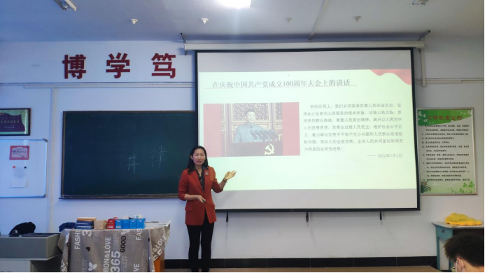 按照《2021年“百名法学家百场报告会”内蒙古法治宣讲活动实施方案》的通知要求,为深入学习宣传和贯彻习近平新时代中国特色社会主义法治思想,引导全体师生带头尊法学法守法用法,营造良好的校园法治环境,11月18日,beat365官网在主教楼418教室举办“从法治进程看建党百年”法治主题宣讲会。马克思主义学院副教授汤洁老师主讲,思想政治教育、法律文秘专业师生参加宣讲会。马克思主义学院院长杨明霞主持。