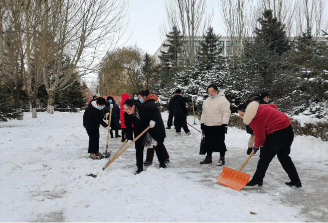 近日,乌兰察布地区冬雪已至,在校园雪景美不胜收的同时也存在着很大的安全隐患。路面的积雪较多、师生出行不便,为响应学校号召,文学与新闻传播学院于11月9日组织全体师生党员和无课班级百余名同学开展清扫校园积雪志愿服务活动暨“我是党员,我帮你”党日活动。
