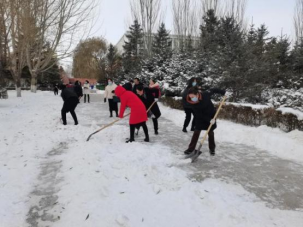 志愿活动中,同学们在老师的带领下,分区域清理积雪。由于天气寒冷大家的双手冻的通红僵硬,但并没有影响老师、同学们的热情和干劲。经过一个半小时热火朝天的清理,几条主要干道被开辟出来,为行人安全通行提供了保障。此次活动的开展充分展现了党组织的凝聚力和我院师生团结奉献的志愿服务精神。