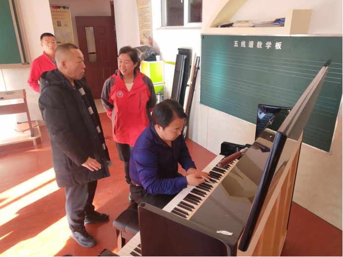 活动中,音乐与舞蹈学院张俊老师主动担起了为集宁区亿利东方小学维护钢琴的任务,并现场对钢琴进行了调律维护。