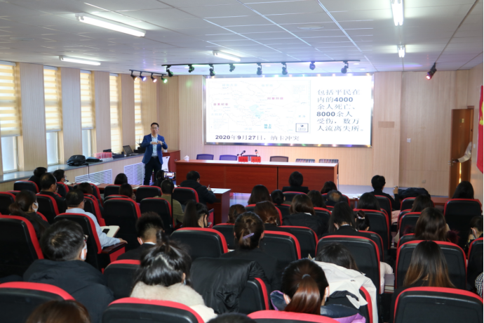 开班式结束后,马克思主义学院郭永兴为本次培训进行宣讲,宣讲的题目是《践行守望相助理念、铸牢中华民族共同体意识》。郭永兴就“为什么铸牢中华民族共同体意识、铸牢中华民族共同体意识的内涵、铸牢中华民族共同体意识的意义、中国特色解决民族问题的正确道路”四个方面进行了阐述。