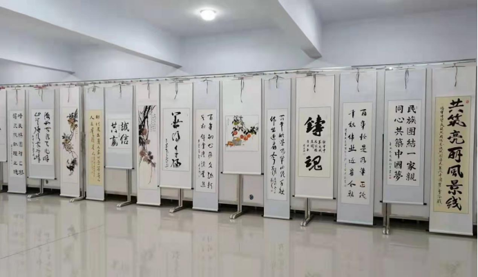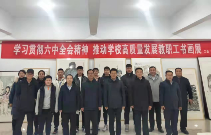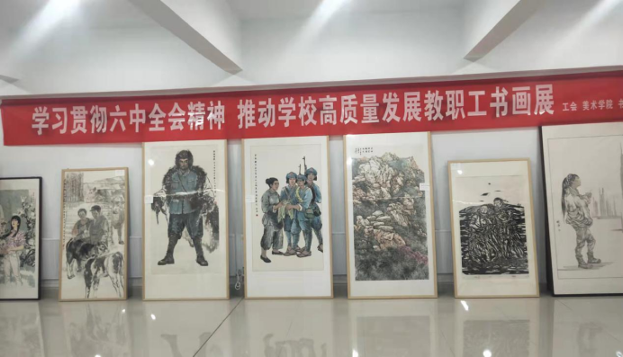 在建党百年之际,为了深入学习贯彻党的十九届六中全会精神,传承红色精神,铸牢中华民族共同体意识,弘扬中华优秀传统文化,推进学校美育教育,加强校园文化建设,深化文明校园创建,推动学校“十四五”高质量发展,凝心聚力,鼓舞士气,12月9日下午,由校工会主办、美术学院和书画学会承办,在泉山校区逸夫楼十楼教工之家成功举办了庆祝建党百年主题教职工书画展览。