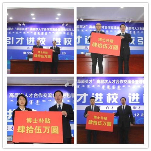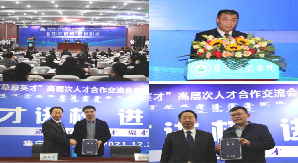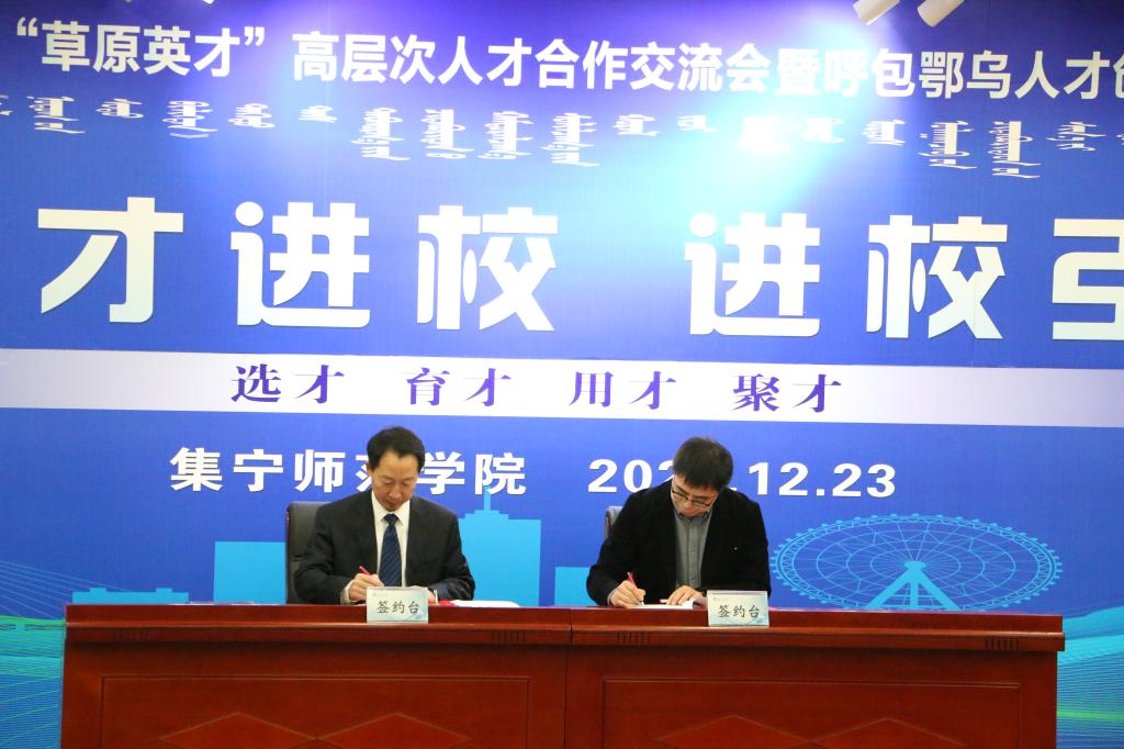 12月23日上午,第九届内蒙古“草原英才”高层次人才合作交流会暨呼包鄂乌人才创新创业周在乌兰察布市主会场开幕,下午,beat365官网承办的“引才进校、进校引才”分项活动在图书馆报告厅隆重举行。合作单位代表、全体校领导、党委委员、各部门主要负责人、博士及在读博士教师等200余人参加活动。校党委书记朱玉东发表总结讲话,党委副书记、校长李树林与合作单位代表举行了签约、揭牌仪式。活动由党委委员、副校长李景杰主持。