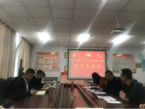 1月16日,数学与统计学院在逸夫楼805召开党史学习教育专题民主生活会。校党委副书记刘春、学校党史学习教育第二指导组成员刘栓成、刘希佳到会指导,党政办公室尹晓慧陪同。会议由数学与统计学院党总支书记张宏智主持,学院总支全体成员参会,副院长张越列席。