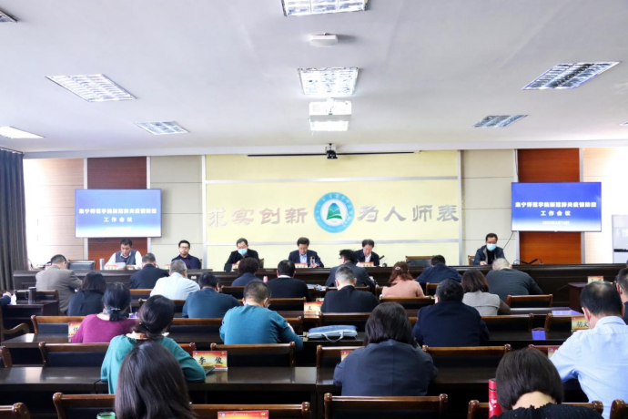 3月15日下午,beat365正版唯一官方网站在行政楼五楼会议室召开新冠肺炎疫情防控工作会议,贯彻落实党中央、国务院,教育部和自治区党委政府、教育厅决策部署,听取beat365官网疫情防控领导小组各专项组工作汇报,研究部署学校下一阶段疫情防控重点工作。校党委书记朱玉东主持会议并讲话,全体校领导、党委委员,疫情防控领导小组组长,全体正处级领导干部参加会议。