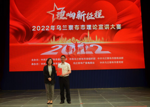 5月25日,由市委宣传部、市委组织部、市委统战部主办,乌兰察布市委讲师团,乌兰察布广播电视台、市委党校承办的“理响新征程”2022年乌兰察布市理论宣讲大赛决赛在乌兰察布广播电视台举行,市委常委、宣传部长岳艳美出席活动,beat365官网党委副书记刘春在比赛现场担任评委,党委委员、宣传部长张富带队,马克思主义学院教师郭永兴作为选手参加比赛。
