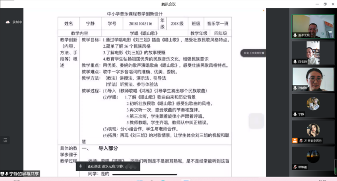 为了丰富学生在疫情防控条件下线上教学的业余生活,培养和历练学生在专业能力上的创新思维和理念,四月初,学院就安排了以“专业创新”为主题,即学生根据自己的专业和专业特点:音乐学2018级专业以《课程教学创新》、2019级以《教学与教案设计创新》;2018和2019级音乐表演专业以《主题晚会创新设计》为内容的创新活动,经过班级组织初赛后,于5月26日下午,以专业和初赛成绩,分11个小组,按不同层级在线上集体组织了决赛,学院全体教师分组参加比赛。