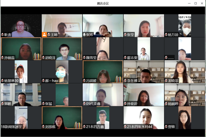 会上,教师党员郝青山领学了习近平总书记在庆祝中国共产主义青年团成立100周年大会上的讲话,教师党员靳舍领学了习近平总书记给北京科技大学老年教授的回信,学生党员方鑫领学了习近平总书记给中国航天科技集团空间站建造青年团队的回信,学生党员张莹领学了习近平总书记给南京大学留学归国青年学者的回信。