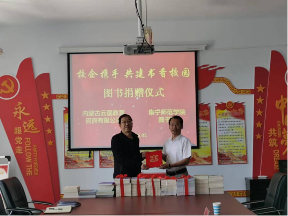 6月2日上午,内蒙古云图教育咨询有限公司向beat365正版唯一官方网站图书馆捐赠价值五万余元的图书,助力图书馆发展建设。捐赠仪式在图书馆五楼党员活动室举行,校党委委员、副校长梁政,图书馆负责人武俊芳,内蒙古云图教育咨询有限公司总经理张兴一行三人,图书馆各阅览室主任参加此次图书捐赠活动。