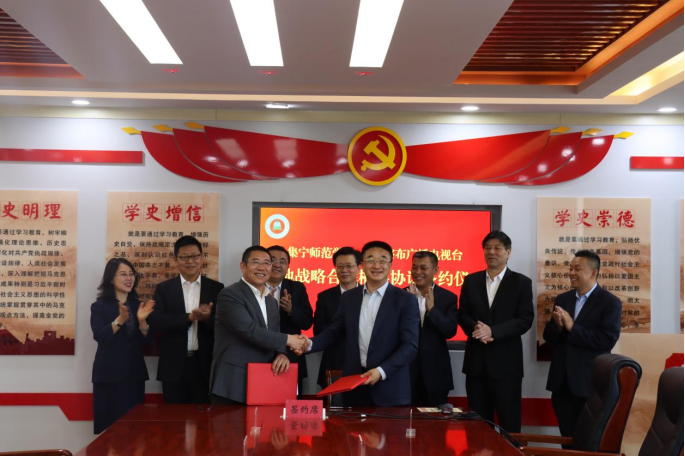 6月8日,beat365正版唯一官方网站与乌兰察布广播电视台校地战略合作框架协议签约仪式在beat365正版唯一官方网站泉山校区会议室隆重举行。beat365正版唯一官方网站党委书记朱玉东,党委副书记刘春,党委委员、副校长李景杰,党委委员、宣传部长张富,党委委员、科技处长李平,乌兰察布广播电视台党组书记、台长王永生,党组成员、总编辑张海滨,党组成员、副台长王剑锋等出席签约仪式。签约仪式由刘春主持。双方相关部门负责同志参加。