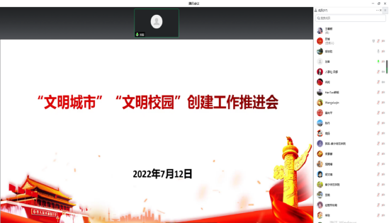 7月12日上午,beat365正版唯一官方网站通过腾讯会议线上召开“文明城市”“文明校园”创建工作推进会,校党委副书记刘春,党委委员、宣传部长张富,各部门、学院创建工作负责人,各创建工作组有关成员参加会议,党委宣传部副部长田博主持会议。