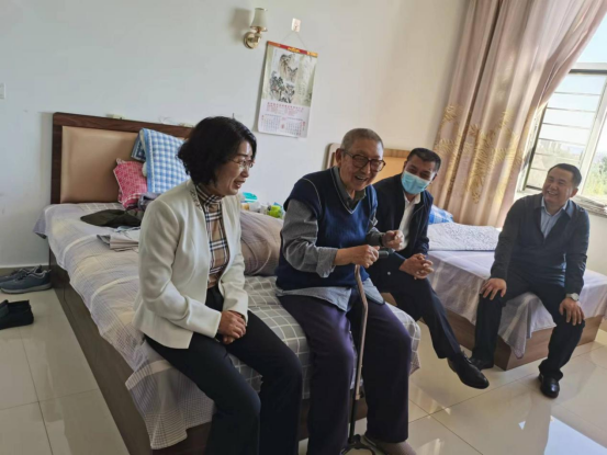 李景杰与老干部、老党员额尔墩达来促膝而谈,详细询问他的身体状况和生活情况,并向他介绍学校近年来各项事业发展取得的成绩,也倾听他对学校发展的意见和建议,感谢他多年来为学校发展作出积极贡献,并祝福他节日快乐、身体健康。