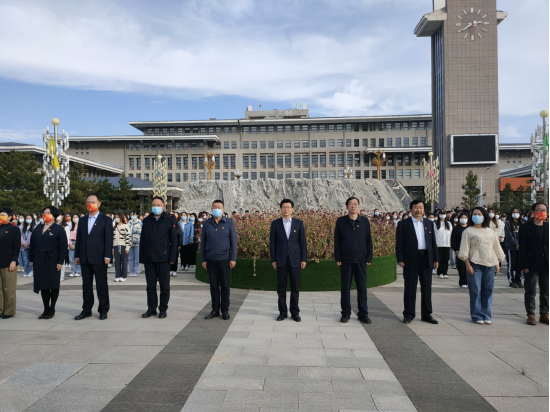 出席升旗仪式的学校领导有党委书记朱玉东,党委副书记、校长刘春,党委委员、副校长梁政,党委委员、副校长李景杰,党委委员、宣传部部长张富,党委委员、科技处处长李平。