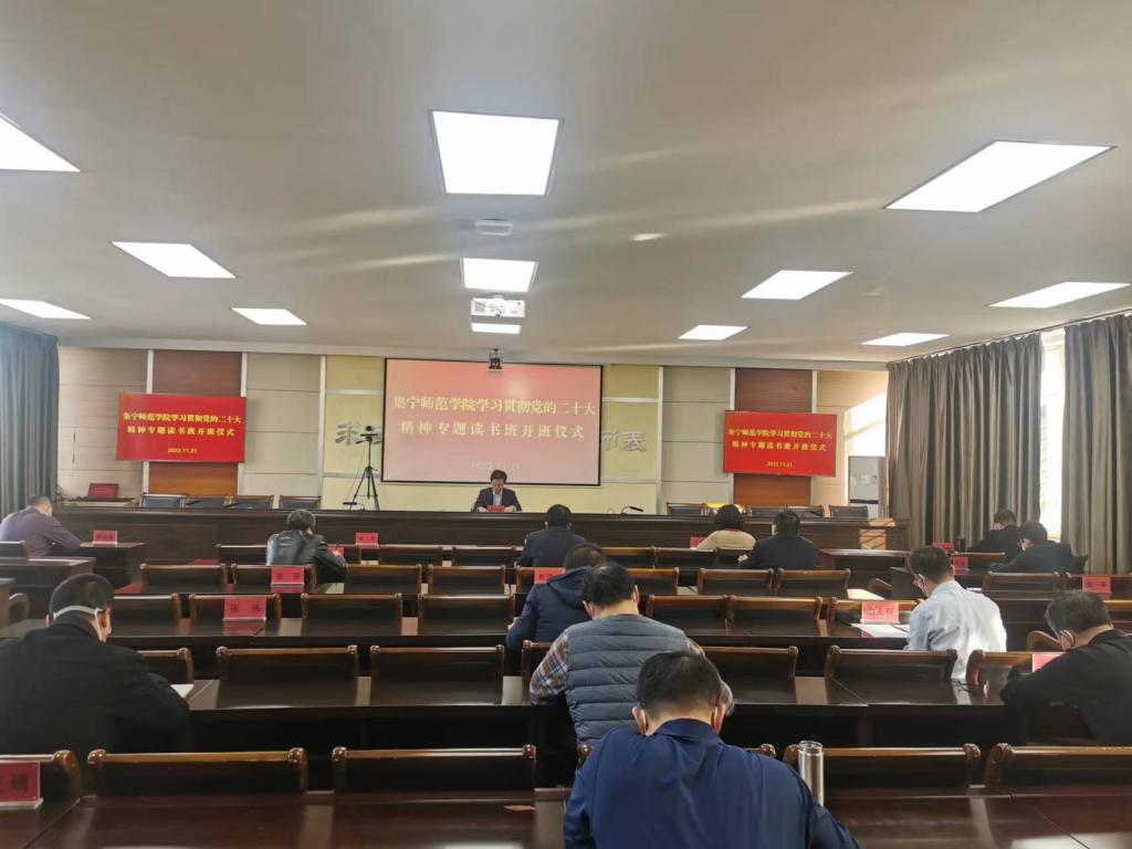 11月21日,beat365正版唯一官方网站学习贯彻党的二十大精神专题读书班开班仪式在泉山校区行政楼五楼会议室举行。党委书记朱玉东主持开班仪式并作动员讲话,党委副书记梁政,党委委员、统战部长张秀文,有关党政部门、二级学院主要负责同志参加开班仪式。