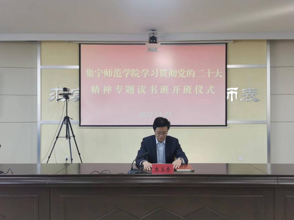 朱玉东对读书班提出三点要求。一是要在学懂弄通上下功夫,深入学习领会党的二十大精神实质;二是要在学以致用上下功夫,把学习党的二十大精神转化为干事创业的生动实践;三是要在学习实效上下功夫,推动党的二十大精神在学校落地生根。