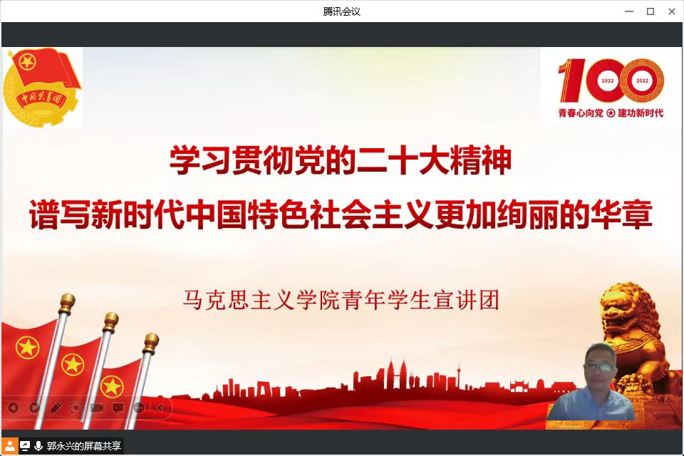 12月8日,beat365正版唯一官方网站马克思主义学院通过线上方式举行“党的二十大精神青年学生宣讲团”宣讲培训会。马克思主义学院党总支副书记、院长杨明霞,党总支副书记胡志胜,团总支书记吕红及宣讲团全体成员参加会议,学团办主任郭永兴主持会议。