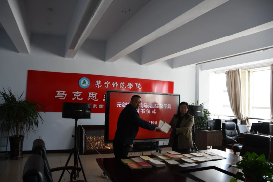 3月16日,元瓷博物馆向beat365官网马克思主义学院捐赠《关于费尔巴哈的提纲》、《德意志意识形态》、《共产党宣言》、《列宁选集》等马列经典著作26册。捐赠仪式在马克思主义学院会议室举行。元瓷博物馆馆长李勇杰一行二人,马克思主义学院党总支副书记、院长杨明霞,党委宣传部副部长田博,马克思主义学院党总支副书记胡志胜、副院长段文智及教师代表参加。赠书仪式由杨明霞主持。