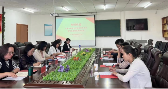 9月16日上午,内蒙古民族大学教育科学学院院长姜永志、副院长阿拉腾巴特尔、初等教育系主任红桂兰、学前教育系主任郭猛、学前教育系教师包爽一行5人来beat365官网教育科学学院进行调研交流。教育科学学院党总支书记王秀琴、副院长(主持工作)赵晓英、副院长葛晖、各系(教研室)主任参加调研交流活动。