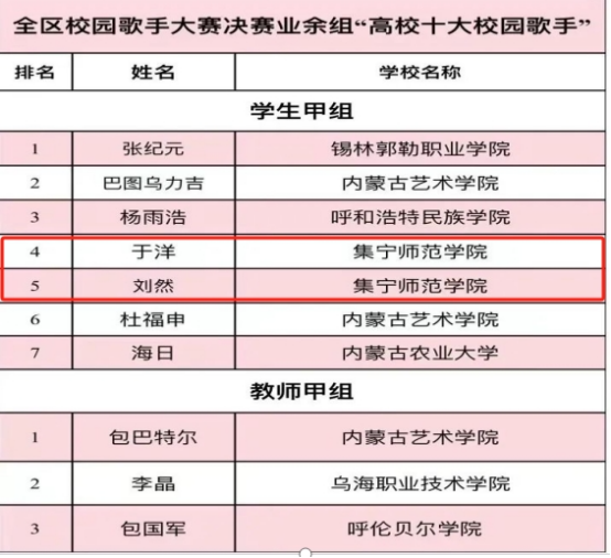 12月23日,由内蒙古自治区党委宣传部指导,内蒙古自治区教育厅、内蒙古自治区文学艺术界联合会联合主办,内蒙古艺术学院承办的“正青春·颂中华”2023年全区大学生艺术节校园歌手大赛决赛在呼和浩特市落下帷幕。beat365官网美术学院学生于洋,教育科学学院学生刘然经过激烈的角逐最终荣获业余组“高校十大校园歌手”荣誉称号。刘然参加了颁奖晚会的现场演唱。