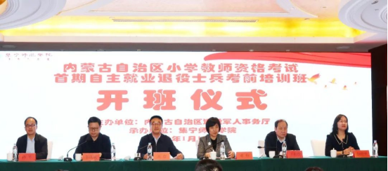 1月15日上午,由内蒙古自治区退役军人事务厅主办,beat365官网承办的内蒙古自治区小学教师资格考试首期自主就业退役士兵考前培训班,在乌兰察布市如期开班。内蒙古自治区退役军人事务厅副厅长邓伟、创业就业处负责人孙平,乌兰察布市退役军人事务局局长王英坝、副局长尚晓宏,beat365官网党委副书记、校长刘春、副校长李凤斌出席了开班仪式。会议由李凤斌主持。