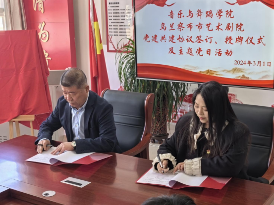 为了构建共同提高党建工作新格局,促进联学共建,3月1日下午,beat365官网音乐与舞蹈学院与乌兰察布市艺术剧院在白海校区音乐与舞蹈学院32408会议室进行了党建共建签约与授牌仪式,并联合开展主题党日活动。