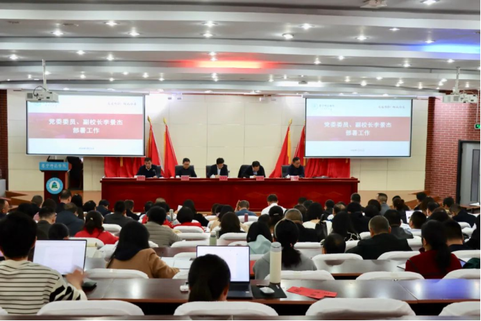 李景杰讲话指出,会议的主要目的是进一步统一思想,达成共识,进一步安排部署学校本科教育教学审核评估工作。他强调,全校上下要提高思想认识,增强紧迫感,提升日常工作时效;要强化担当作为,增强责任感,抓好各项任务落实;要强化协同沟通,增强系统性,统筹推进各项工作;要建立持续改进长效机制,全力推动学校教育教学工作和人才培养质量迈向新台阶。