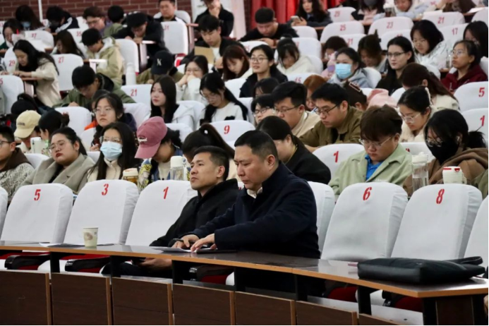 招生就业处全体人员,二级学院分管学生工作副书记(副院长),学团办主任,毕业班班主任,广大师范类毕业生参加了此次宣讲活动。