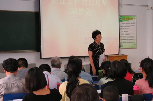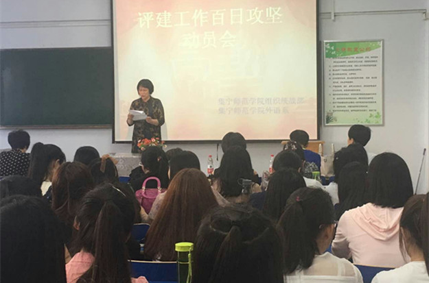 朱俊仙做重要讲话。对组织统战部和外语系的评建工作提出了要求。第一,大家要充分认识本科教学合格评估的重要意义,做到“以评促建,以评促改,以评促管、评建结合,重在建设”。迎接评估的过程实际上是学校高速建设的过程。本科教学合格评估是国家对新升本科院校教学工作实施质量监控的一种有效手段,是促进高等教育教学质量提高的一种长效机制,是推动学校实现转型、提升、发展目标的良好机遇,还是规范教学管理,完善教学质量保证体系的过程,更是对本科教学工作的一次全面检查和验收。第二,距离正式评估还有100天的时间,可以说已经到了冲刺的关键时刻。评估冲刺阶段就像运动场上百米冲刺一样,稍有松懈就会落在别人后面。在评估的关键时刻,我们绝对不能松懈,一定要奋力向前,全力冲到终点。动员大会意图简单明确,就是希望上下团结一致,以最好的状态,高度的主人翁责任感,以时不我待、只争朝夕的紧迫感,以更加积极的工作态度参与到合格评估各项准备工作中去。第三,我们要清醒地认识到,我们还有很多的任务要完成,还有很多问题要解决,大家一定要统一思想,提高认识,凝心聚力,扎实工作,把评建工作做好。